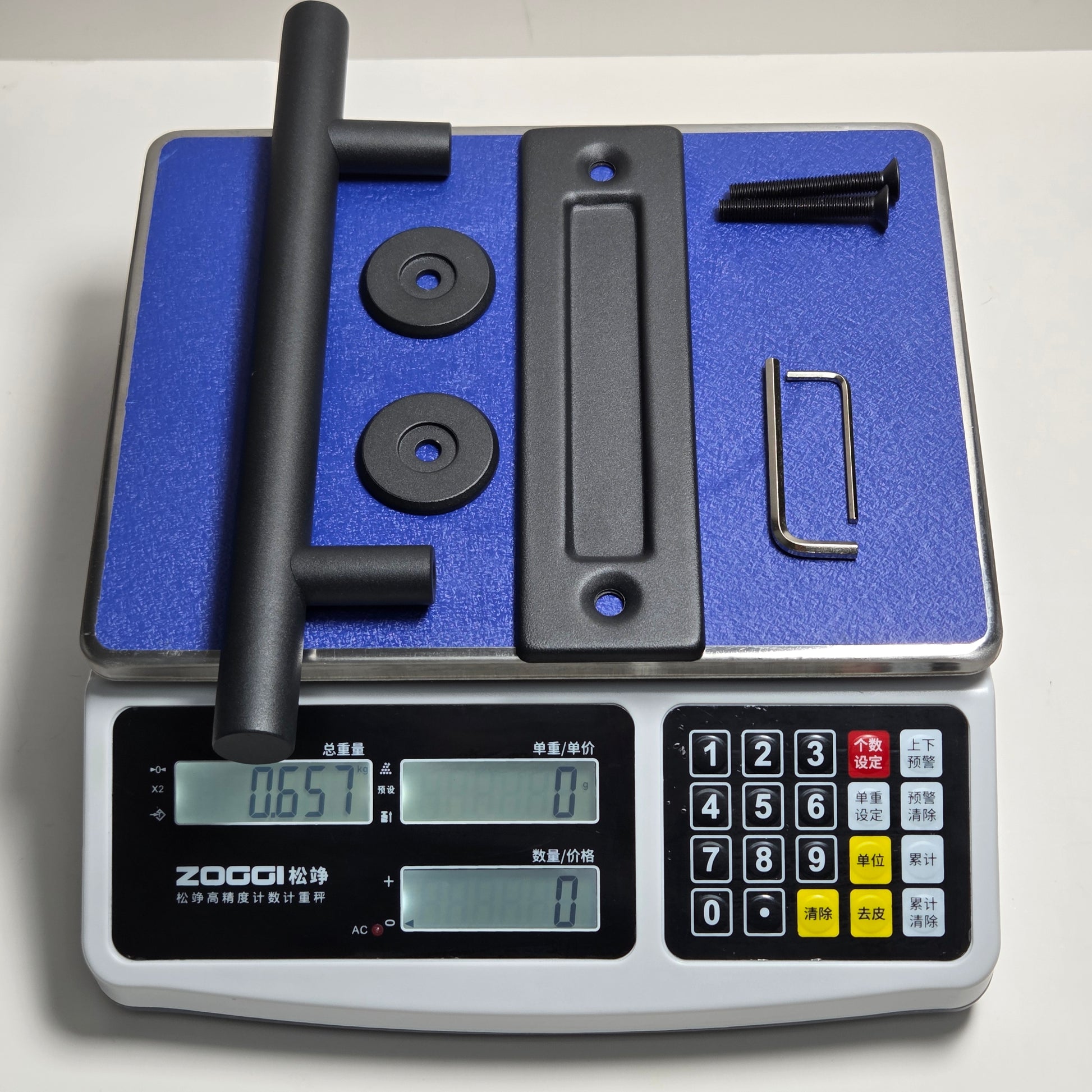 This sliding barn door handle set is designed for both functionality and durability, combining a pull handle and flush handle to support smooth operation on sliding doors where space efficiency and strength are critical.