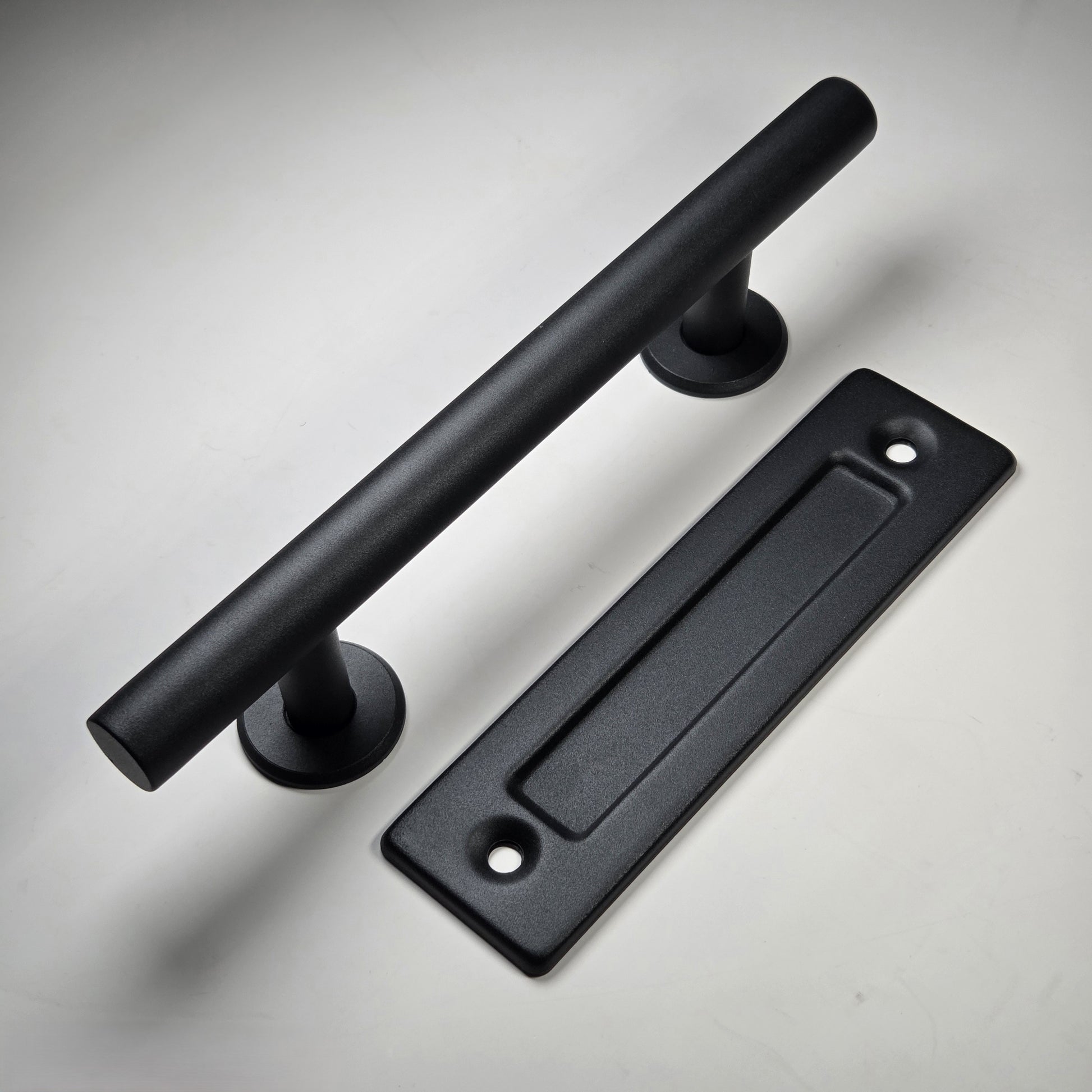 A factory-verified carbon steel barn door handle set, executed and quality-controlled by 29plus for reliable sliding door applications.