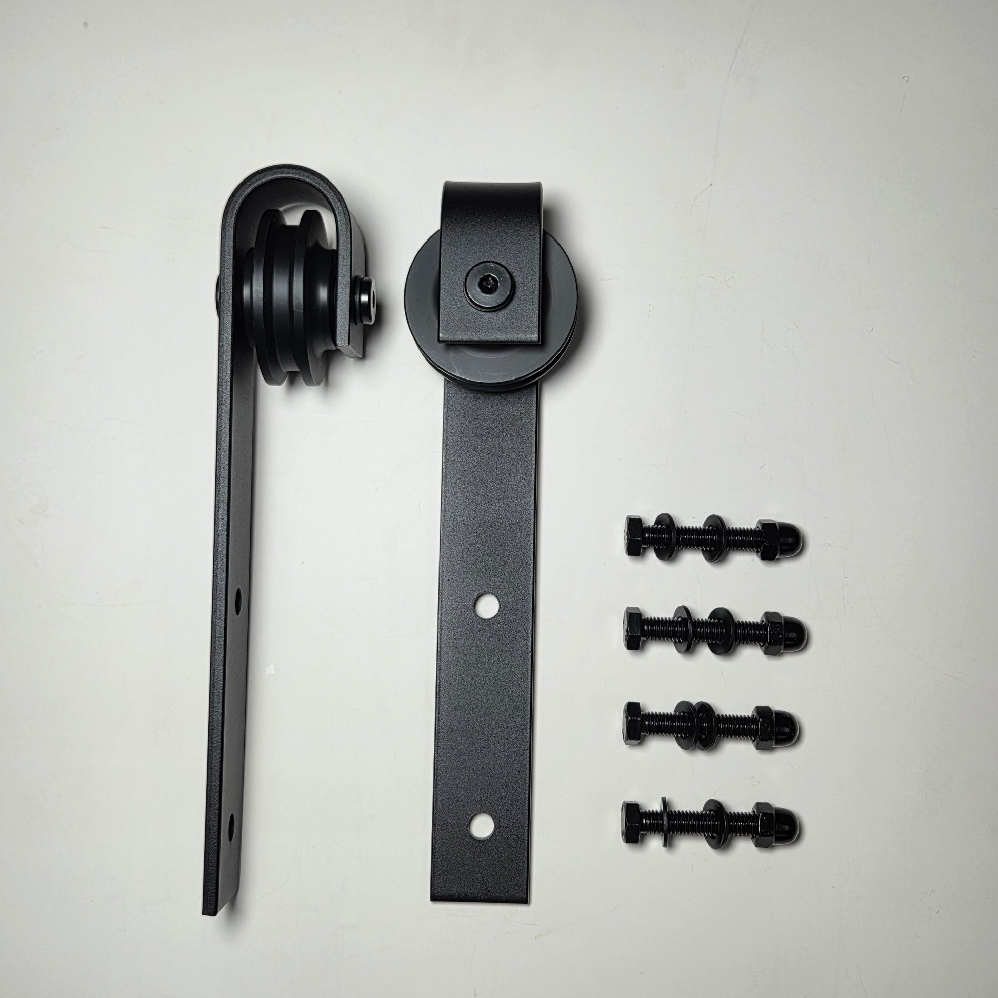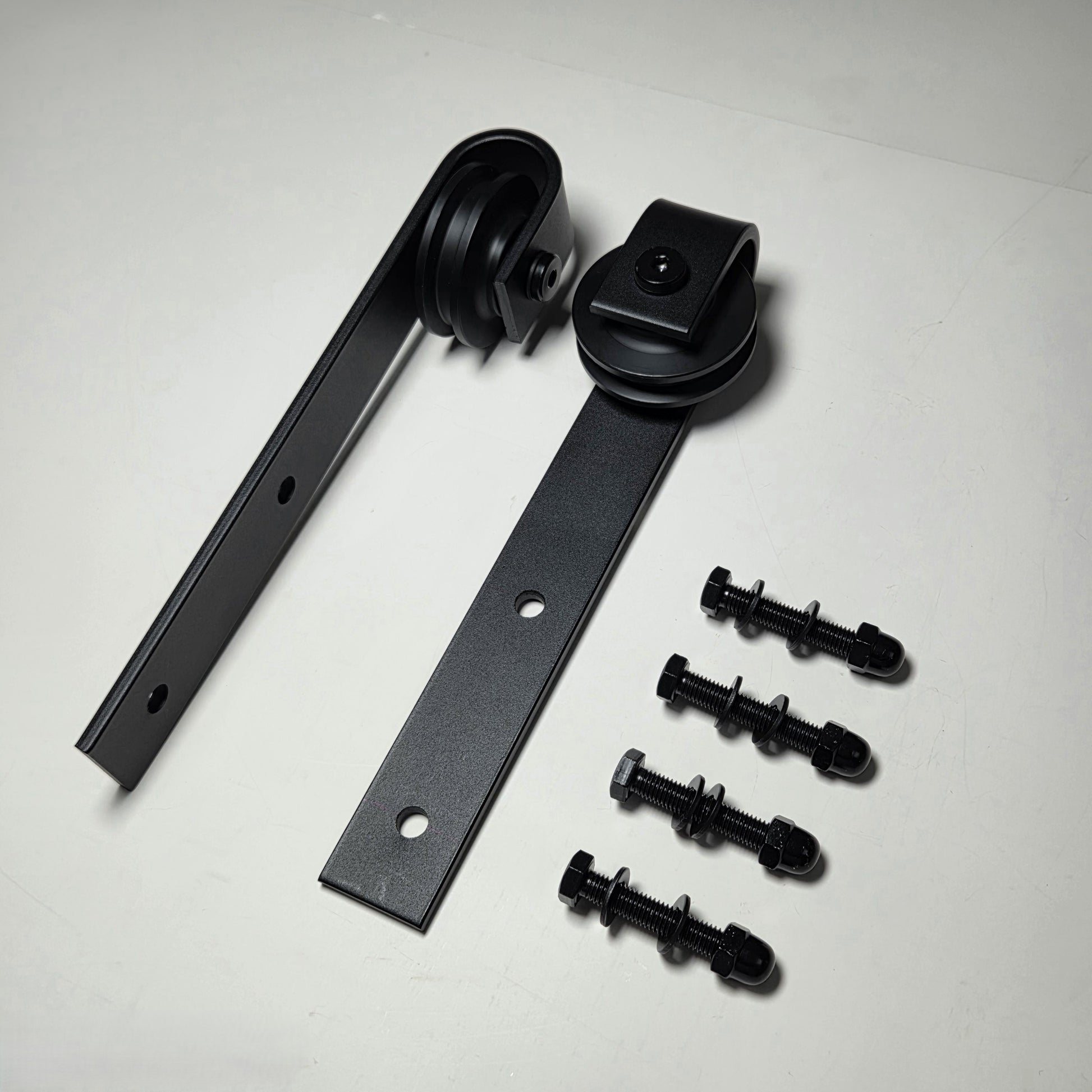 Heavy-duty sliding door roller set made from carbon steel.